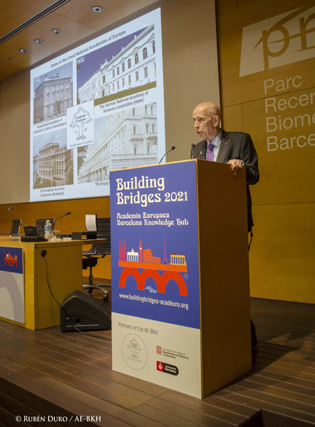 Professor Sierd Cloetingh, President of Academia Europaea, presented the Gold Medal to Professor Petersen in Barcelona on 20th October, thanking him for his service to the Academy over many decades.